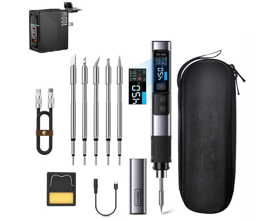 Lötspitzen sind auch ein Lötkabelhalter sowie zweizusätzliche und verstellbare Arme zum Halten der Leiterplatte beim Löten